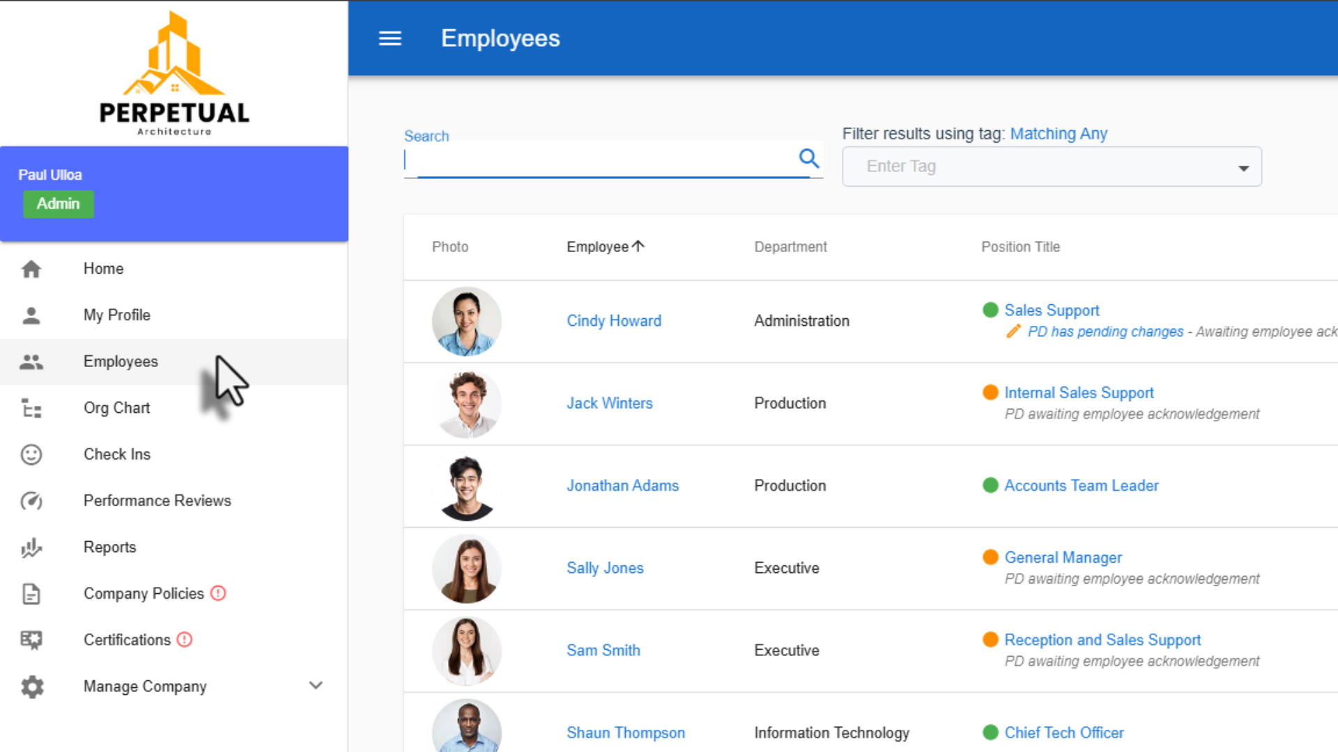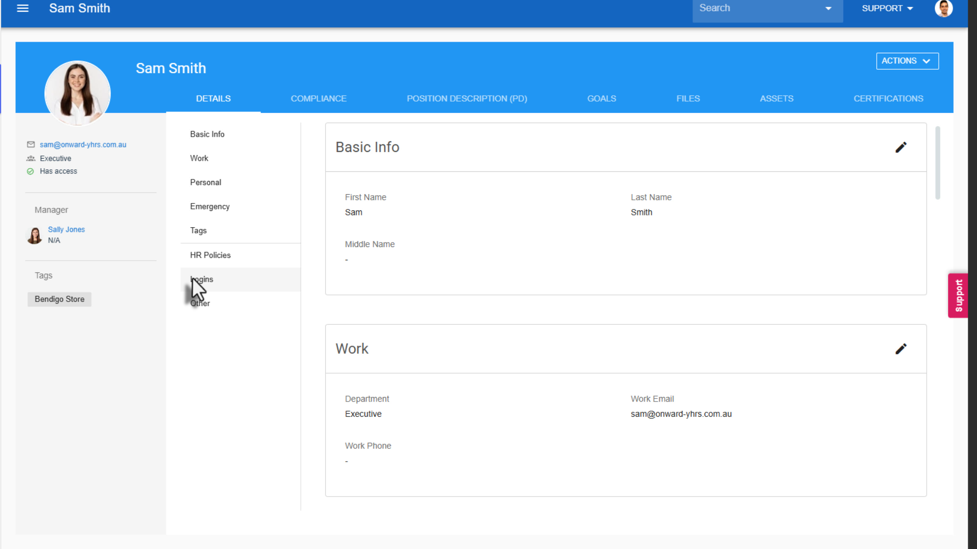 From the Home menu, select Employees and then click on the employee you want to update to open their profile.